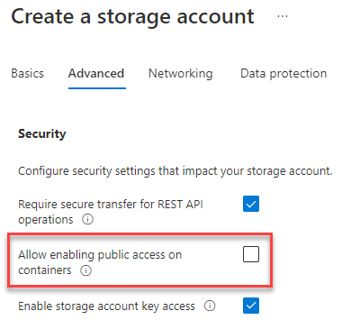 Going forward, no one can create a Storage Account with Allow enabling public access on containers enabled either from the portal or by any other means (like CLI/PowerShell etc). In such case Azure will throw an error as shown below
