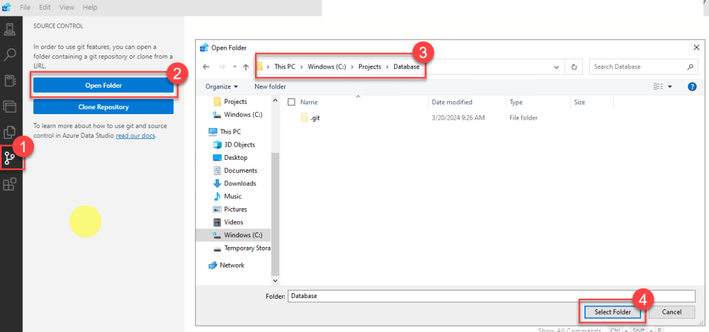 Let’s now open our project folder where you have cloned the Database repository using the git window as shown below.