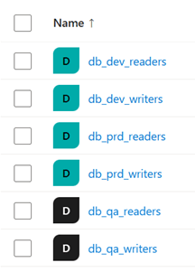 - Create Microsoft Entra – Security Groups db_<env>_readers and db_<env>_writers
